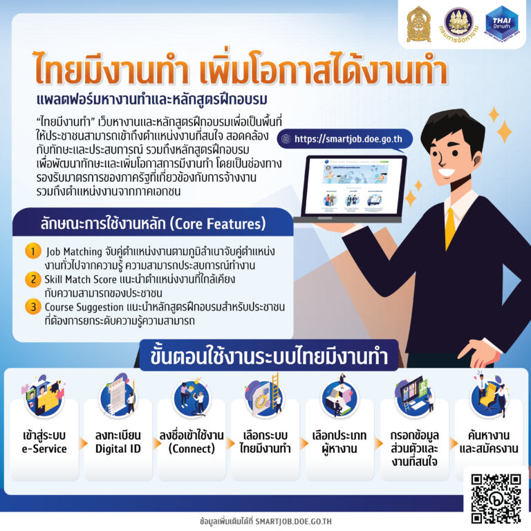 ไทยมีงานทำ เพิ่มโอกาสได้งานทำ แพลตฟอร์มหางานทำและหลักสูตรฝึกอบรม…