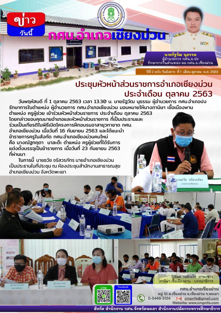 ประชุมหัวหน้าส่วนราชการอำเภอเชียงม่วน ประจำเดือน ตุลาคม 2563 1 ตุลาคม 2563