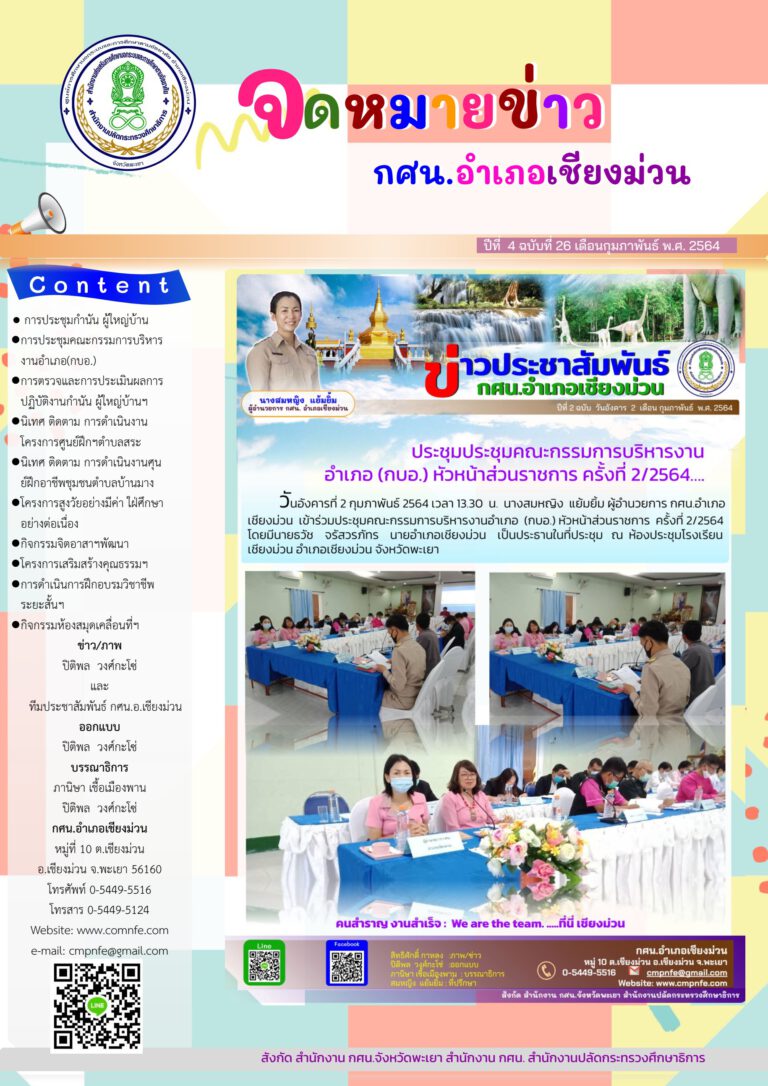 จดหมายข่าว กศน.อำเภอเชียงม่วน ประจำเดือน กุมภาพันธ์ 2564