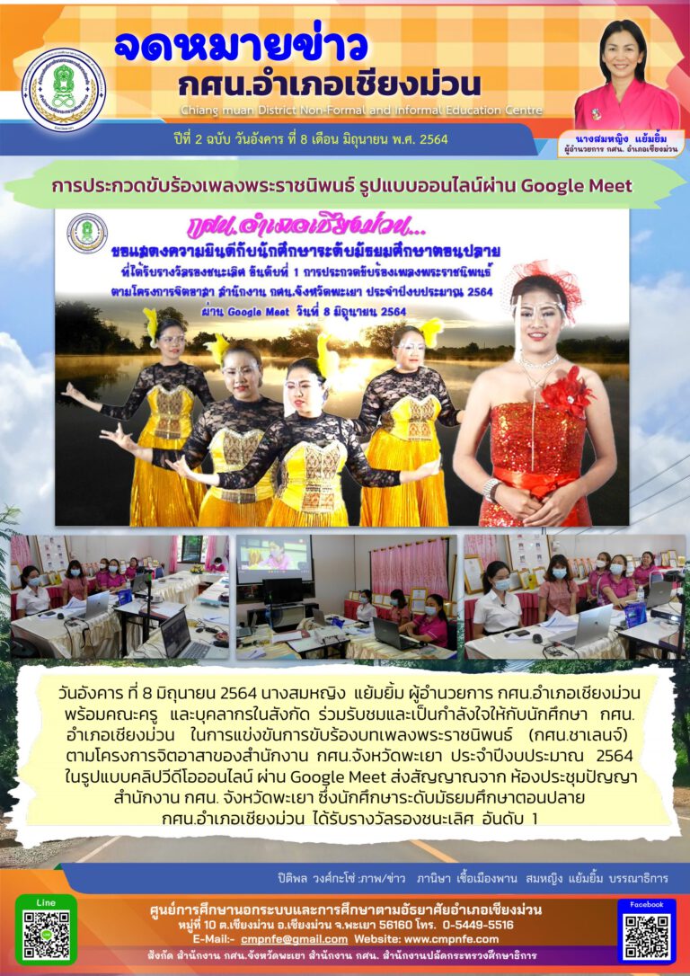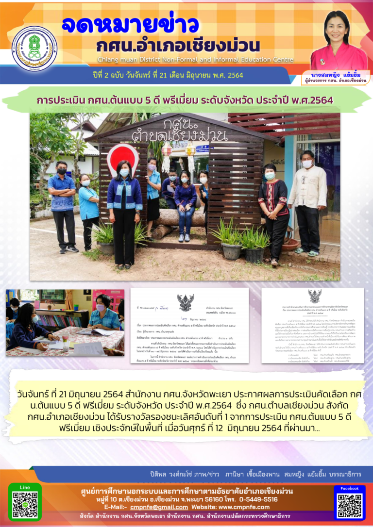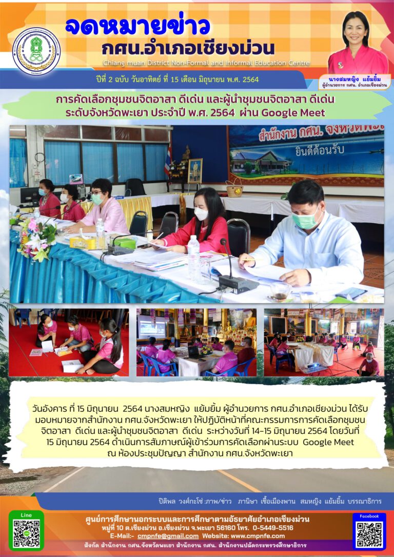วันจันทร์ ที่ 21 มิถุนายน 2564 นางสมหญิง แย้มยิ้ม ผู้อำนวยการ กศน.อำเภอเชียงม่วน มอบหมายให้ครู กศน.ในสังกัด เข้ารับการอบรมพัฒนาศักยภาพบุคลากรดิจิทัลภายใต้โครงการยกระดับศูนย์การเรียนรู้ ICT ชุมชนสู่ศูนย์ดิจิทัลชุมชน ในรูปแบบอบรมทางไกลผ่านระบบออนไลน์ โดยใช้โปรแกรม Microsoft Team ในระหว่างวันที่ 21 - 25 มิถุนายน 2564 ดำเนินการโดย สาขาวิชาการจัดการเทคโนโลยีสารสนเทศ คณะวิศวกรรมศาสตร์ มหาวิทยาลัยมหิดล