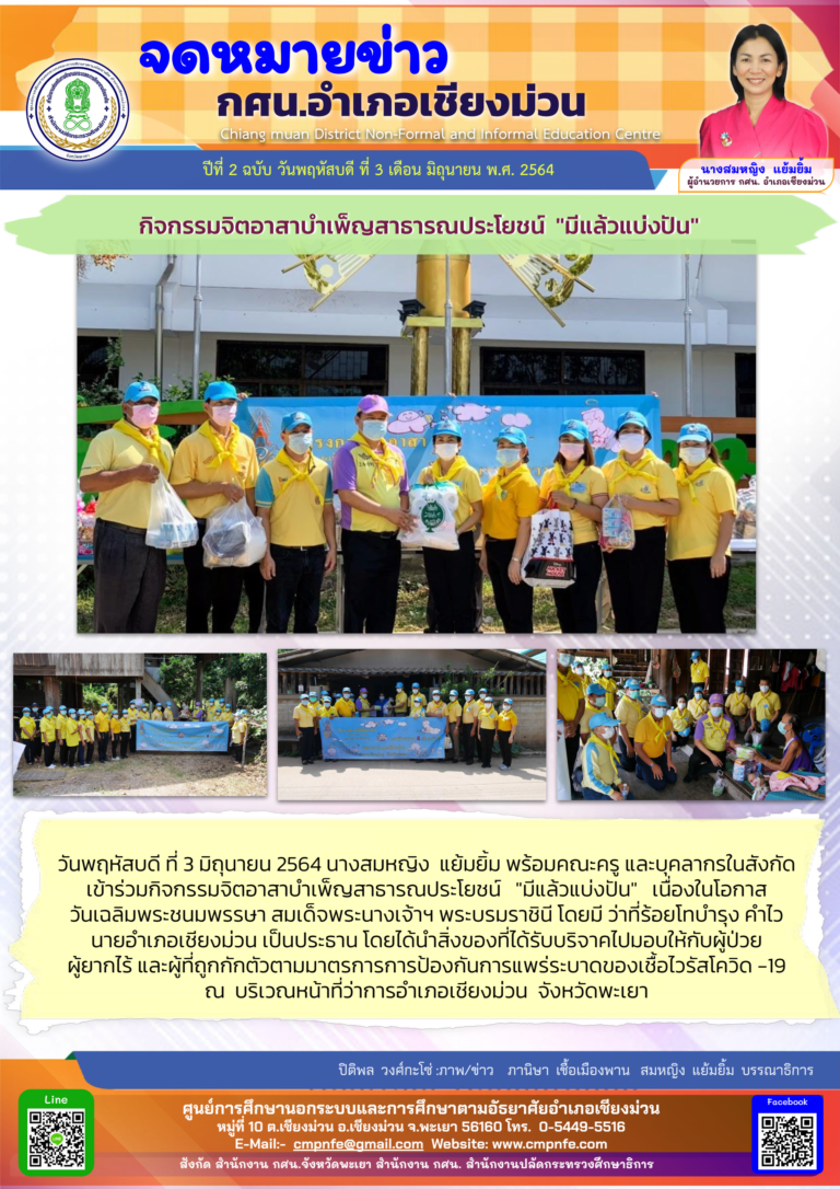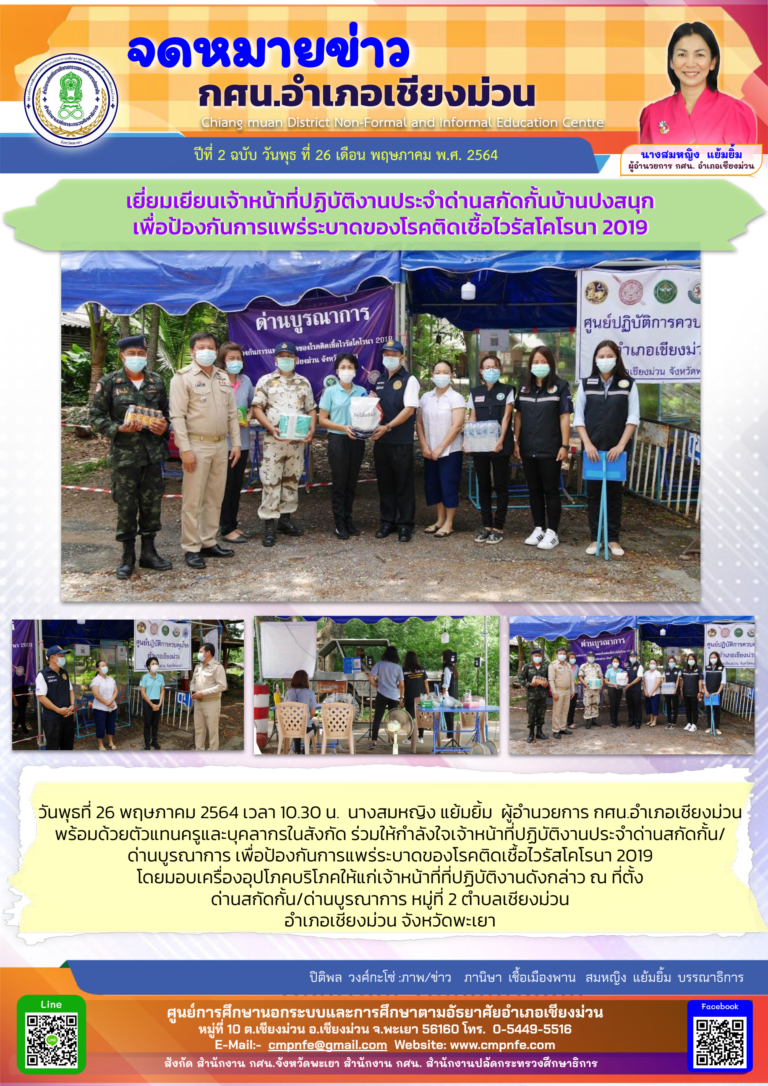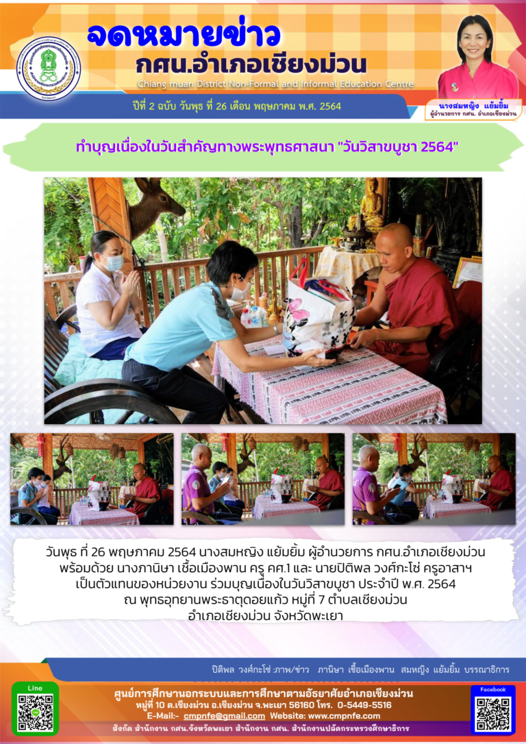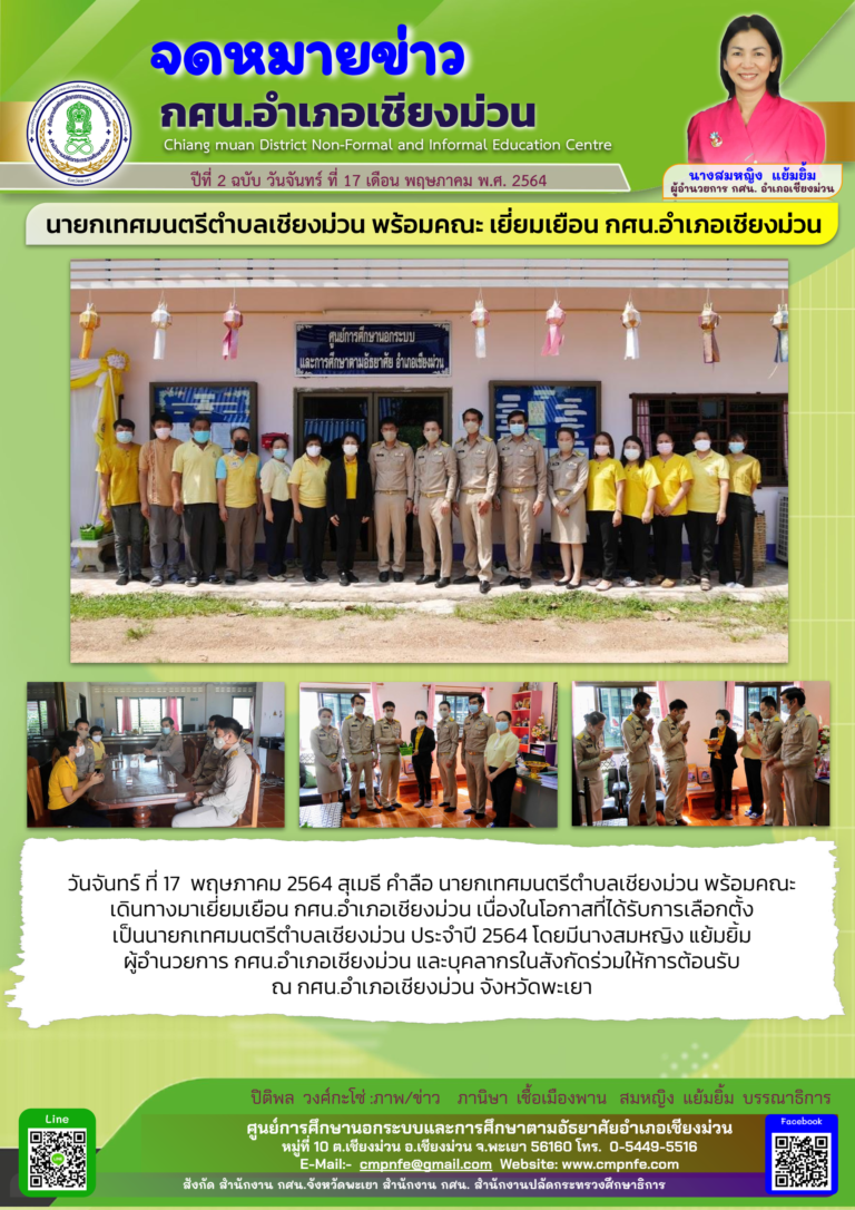 วันอังคาร ที่ 25 พฤษภาคม 2564 นางสมหญิง แย้มยิ้ม ผู้อำนวยการ กศน.อำเภอเชียงม่วน มอบหมายให้ นางภานิษา เชื้อเมืองพาน ครู และนายปิติพล วงศ์กะโซ่ ครูอาสาสมัครการศึกษานอกโรงเรียน เข้ารับการอบรมด้วยระบบออนไลน์ ผ่าน Zoom ในหลักสูตร การพัฒนาสมรรถนะครู กศน. ด้านการจัดทำคลิปสื่อการเรียนการสอนวิทยาศาสตร์ ศูนย์วิทยาศาสตร์เพื่อการศึกษาลำปาง ระหว่างวันที่ 25 , 27 และ 28 พฤษภาคม 2564 ณ กศน.อำเภอเชียงม่วน จังหวั