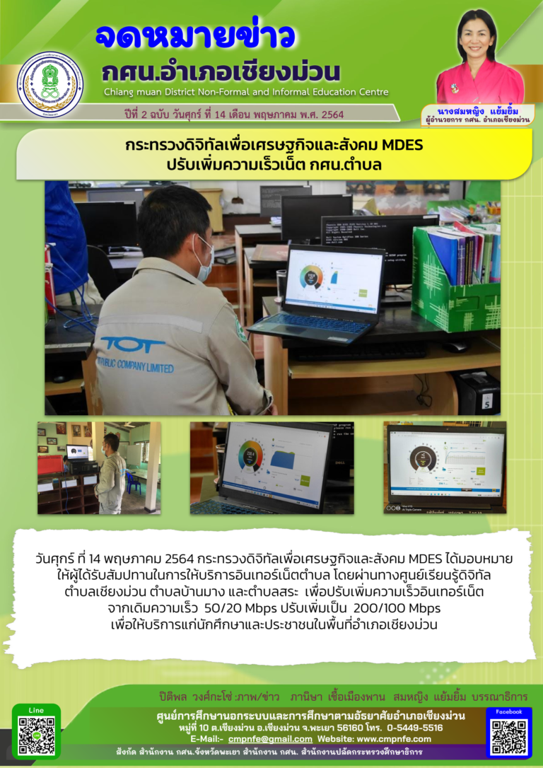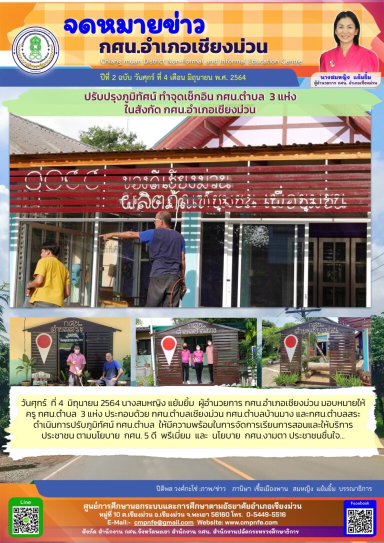 วันศุกร์ ที่ 14 พฤษภาคม 2564 นางสมหญิง แย้มยิ้ม ผู้อำนวยการ กศน.อำเภอเชียงม่วน มอบหมายให้นางภานิษา เชื้อเมืองพาน ครู ศศ.1 และนายไชยพจน์ สมภาร ครู กศน.ตำบล เข้ารับการอบรมพัฒนาบุคลากร กศน.แบบ Online “ หลักสูตรการจัดกิจกรรม กศน. ป้องกันภาวะซึมเศร้า คงสมรรถนะทางกาย จิตและสมองของผู้สูงอายุ ” รุ่นที่ 2 สำนักงาน กศน.จังหวัดพะเยา ครั้งที่ 6 Module 4 เวลา 10:00 - 12:00 น. “ การทำงานของสมองที่เชื่อมโยง