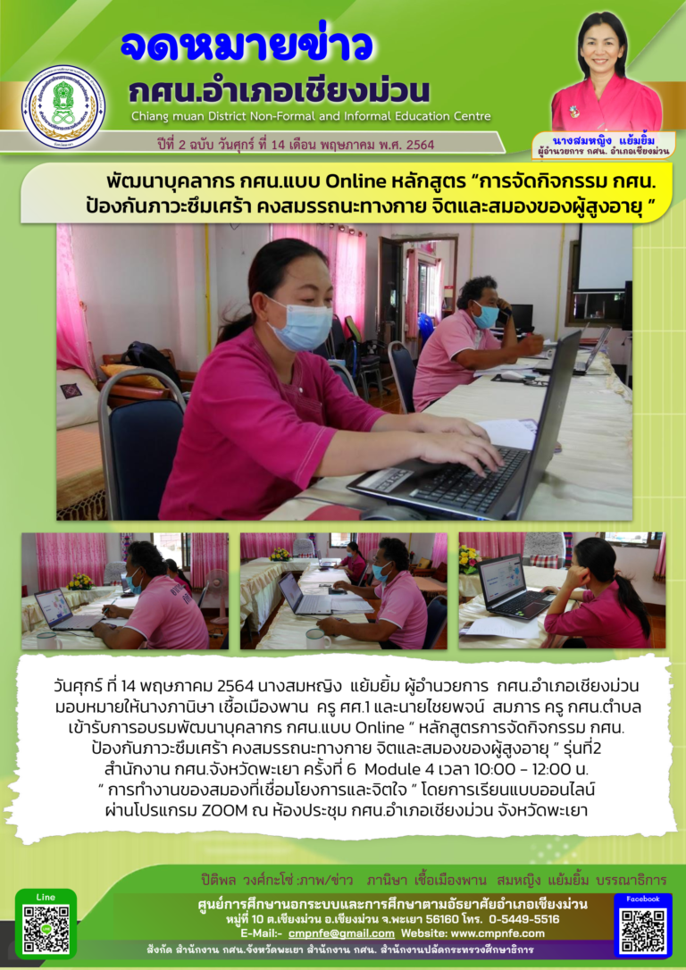 พัฒนาบุคลากร กศน.แบบ Online หลักสูตร “การจัดกิจกรรม กศน. ป้องกันภาวะซึมเศร้า คงสมรรถนะทางกาย จิตและสมองของผู้สูงอายุ ”