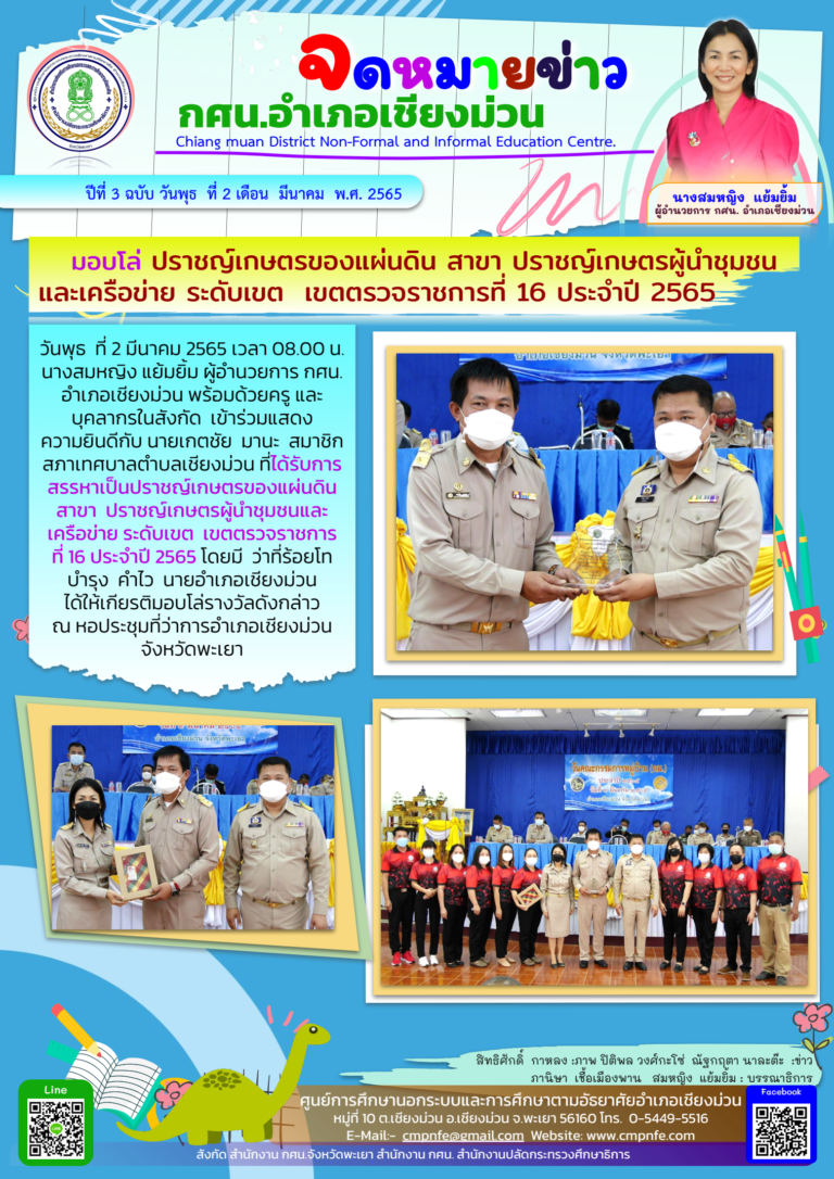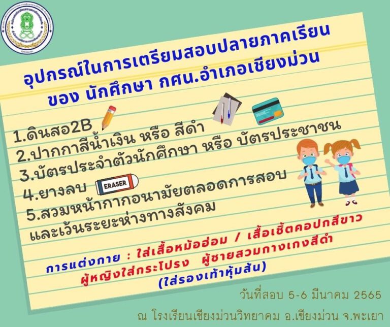 5-6 มีนาคม 2565 การสอบวัดผลสัมฤทธิ์ปลายภาคเรียนที่ 1 ปีการศึกษา 2564 ของนักศึกษา กศน.อำเภอเชียงม่วน…