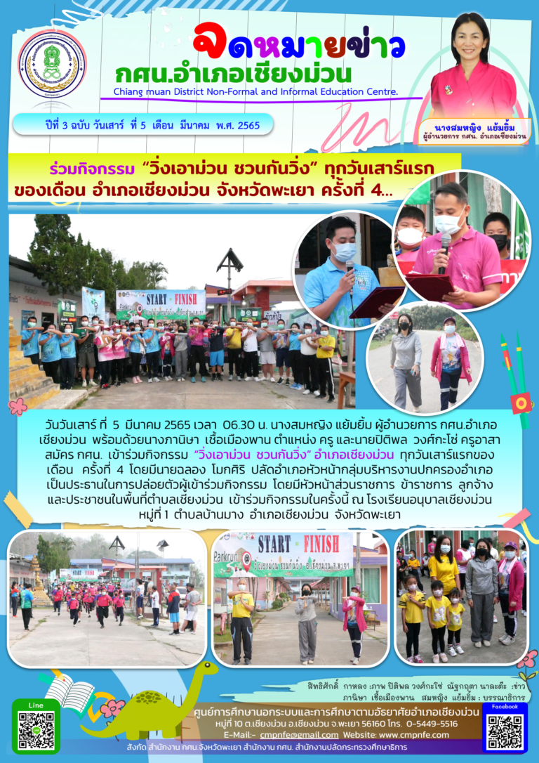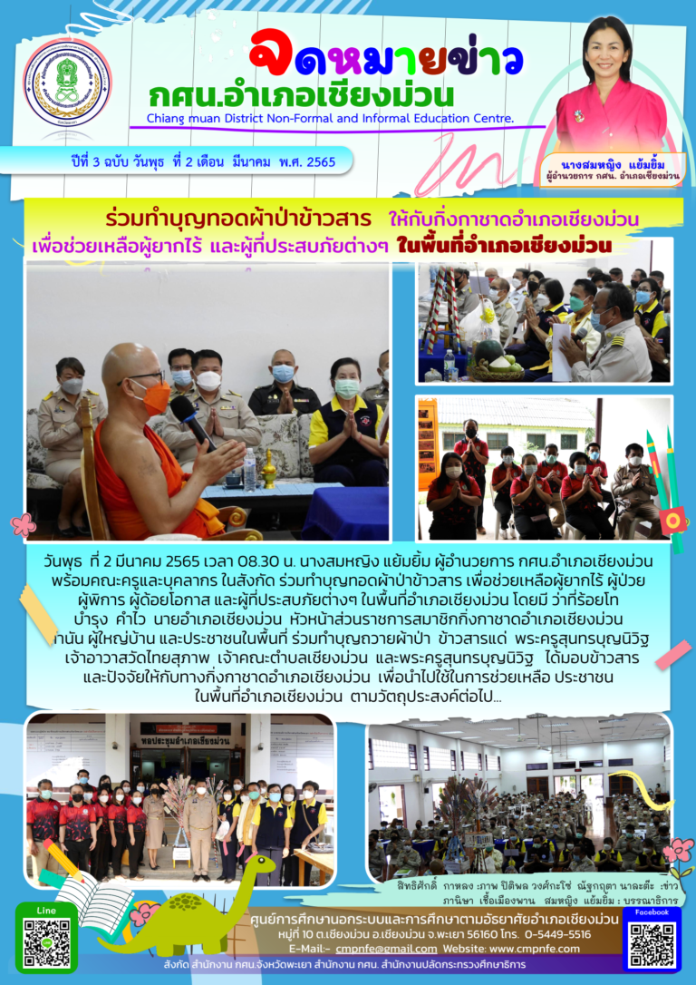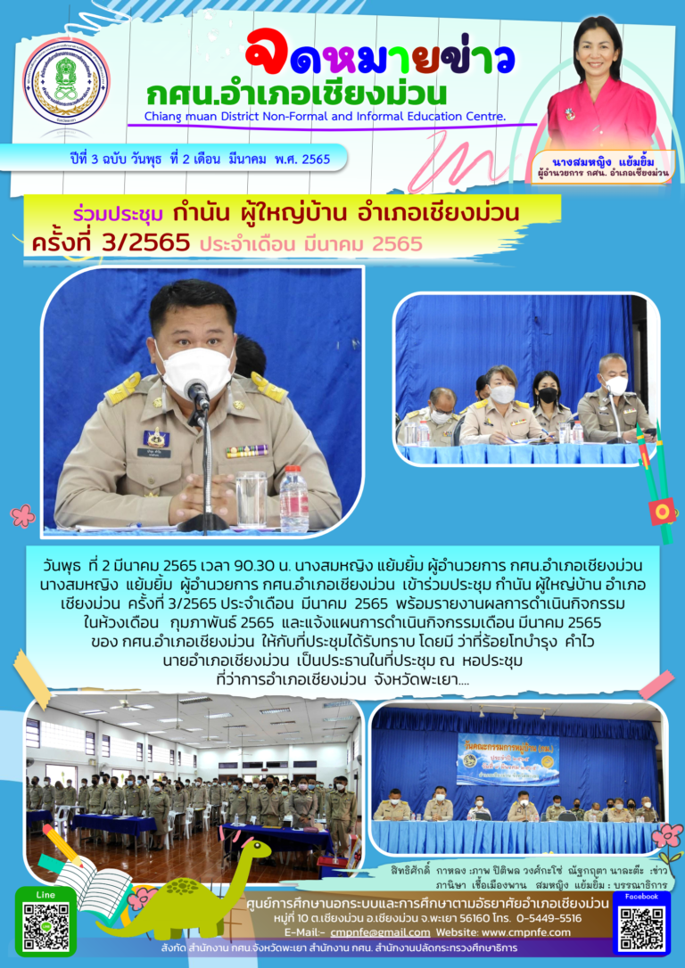 วันเสาร์ ที่ 5 มีนาคม 2565 เวลา 08.00 น. กศน.อำเภอเชียงม่วน ดำเนินการสอบวัดผลสัมฤทธิ์ภาคเรียนที่ 2 ปีการศึกษา 2564 ของนักศึกษา กศน.อำเภอเชียงม่วน ทั้ง 3 ระดับ ประกอบด้วยระดับประถมศึกษา มัธยมศึกษาตอนต้น และมัธยมศึกษาตอนปลาย ระหว่างวันที่ 5-6 มีนาคม 2565 ณ โรงเรียนเชียงม่วนวิทยาคม หมู่ที่ 1 ตำบลบ้านมาง อำเภอเชียงม่วน จังหวัดพะเยา โดยมีนางสาวกัญญาณี ชวาเขียว รองผู้อำนวยการโรงเรีย