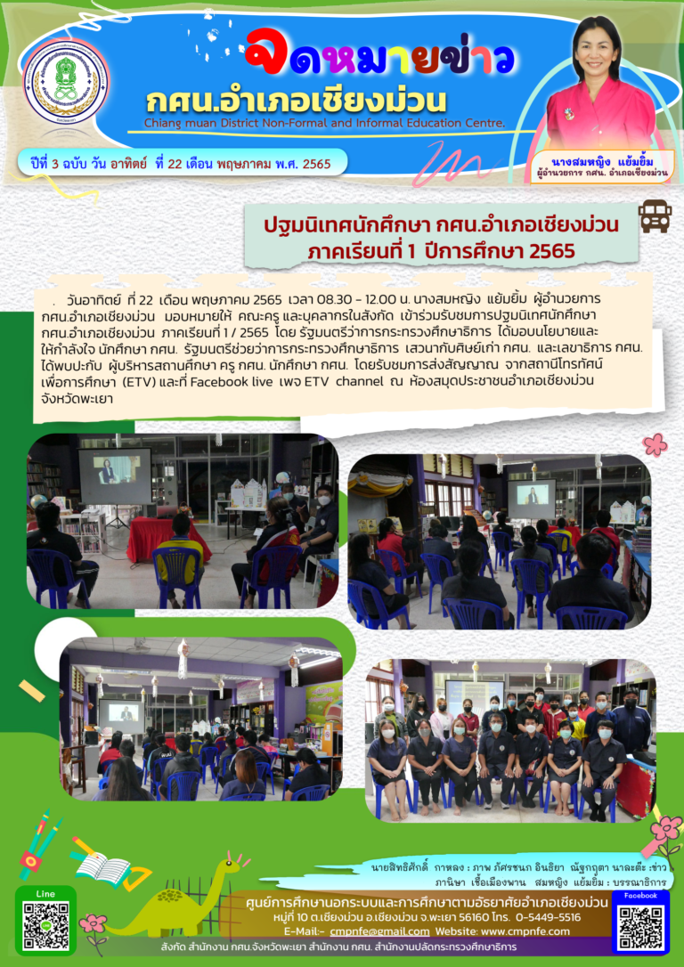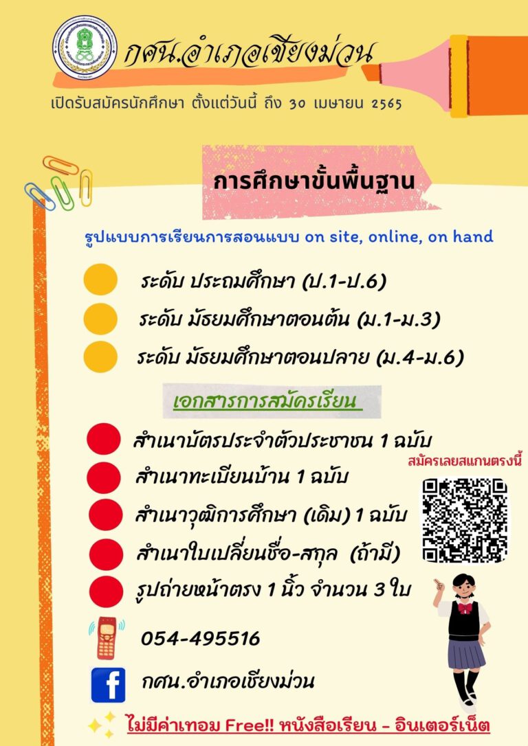 กศน.อำเภอเชียงม่วน จังหวัดพะเยา เปิดรับสมัครนักศึกษา ภาคเรียนที่ 1 ปีการศึกษา 2565