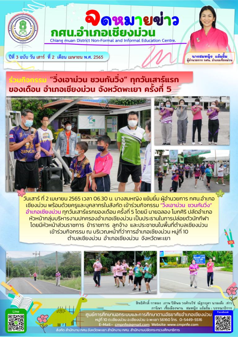 2 เม.ย.2565 ร่วมกิจกรรม “วิ่งเอาม่วน ชวนกันวิ่ง” ทุกวันเสาร์แรกของเดือน อำเภอเชียงม่วน จังหวัดพะเยา ครั้งที่ 5…