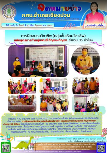 20 มิถุนายน 2565 การฝึกอบรมวิชาชีพ รูปแบบชั้นเรียนวิชาชีพ วิชา การทำสบู่แฟนซี กัญชง กัญชา จำนวน 35 ชั่วโมง