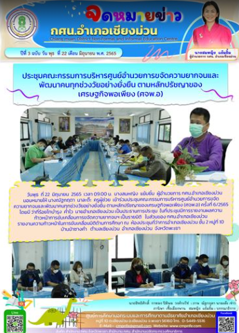 22 มิถุนายน 2565 ประชุมคณะกรรมการบริหารศูนย์อำนวยการขจัดความยากจนและพัฒนาคนทุกช่วงวัยอย่างยั่งยืน ตามหลักปรัชญาของเศรษฐกิจพอเพียง (ศจพ.อ)…