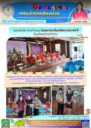 23 มิถุนายน 2565 มอบปัจจัย ร่วมทำบุญ วันสถาปนาโรงเรียน ครบ 63 ปี โรงเรียนบ้านท่าม่าน ตำบลเชียงม่วน…