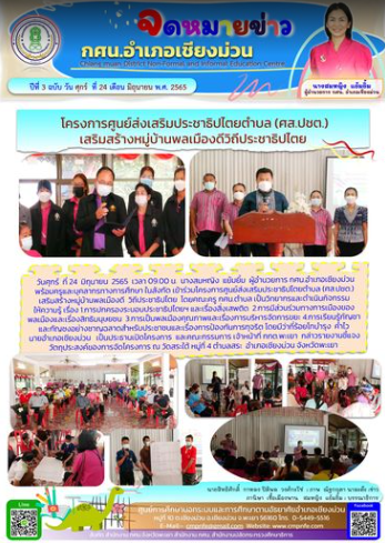 24 มิถุนายน 2565 โครงการศูนย์ส่งเสริมประชาธิปไตยตำบล (ศส.ปชต.) เสริมสร้างหมู่บ้านพลเมืองดีวิถีประชาธิปไตย