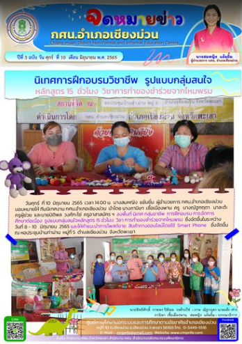 10 มิถุนายน 2565 นิเทศการฝึกอบรมวิชาชีพ รูปแบบกลุ่มสนใจ หลักสูตร 15 ชั่วโมง วิชาการทำของชำร่วยจากไหมพรม…