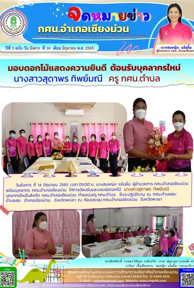 14 มิถุนายน 2565 ร่วมแสดงความยินดีต้อนรับบุคลากร กศน.อำเภอเชียงม่วน คนใหม่ นางสาวสุดาพร ทิพย์มณี ครู กศน.ตำบล…
