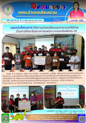 15 มิถุนายน 2565 มอบเงินโครงการ ให้ความช่วยเหลือบรรเทาภาระค่าใช้จ่าย ด้านการศึกษาในช่วงการแพร่ระบาดของโรคโควิด-19…