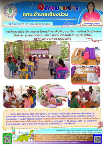 17 มิถุนายน 2565 การฝึกอบรมวิชาชีพ รูปแบบชั้นเรียน วิชา การทำผ้าต้องลาย จำนวน 35 ชั่วโมง