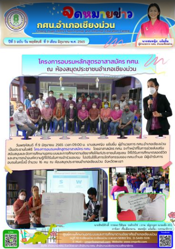 9 มิถุนายน 2565 โครงการอบรมหลักสูตรอาสาสมัคร กศน. ณ ห้องสมุดประชาชนอำเภอเชียงม่วน…