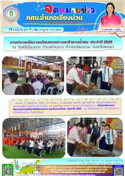 30 มิถุนายน 2565 โครงการส่งเสริมสุขภาพอนามัย ใส่ใจความปลอดภัยทั้งชีวิตและทรัพย์สิน ณ ห้องสมุดประชาชนอำเภอเชียงม่วน…