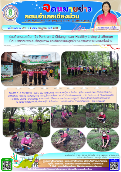 2 กรกฎาคม 2565 ร่วมกิจกรรม เดิน – วิ่ง Parkrun & Chiangmuan Healthy Living challenge นัดหมายรวมพล คนรักสุขภาพ และกิจกรรมปลูกป่า ณ สวนสาธารณะดงก้นฝาย…