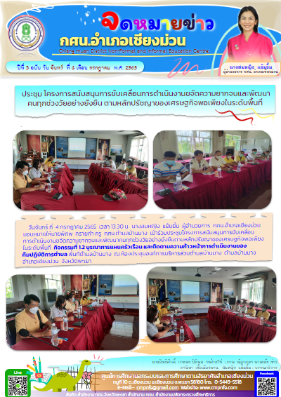 4 กรกฎาคม 2565 ประชุม โครงการสนับสนุนการขับเคลื่อนการดำเนินงานขจัดความยากจนและพัฒนาคนทุกช่วงวัยอย่างยั่งยืน ตามหลักปรัชญาของเศรษฐกิจพอเพียงในระดับพื้นที่…