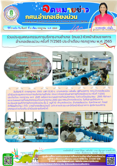 4 กรกฎาคม 2565 ร่วมประชุมคณะกรรมการบริหารงานอำเภอ (กบอ.) หัวหน้าส่วนราชการ อำเภอเชียงม่วน ครั้งที่ 7/2565 ประจำเดือน กรกฎาคม พ.ศ. 2565…