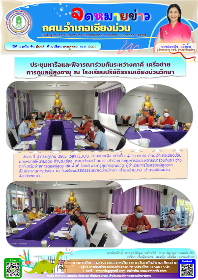 4 กรกฎาคม 2565 ประชุมหารือและพิจารณาร่วมกันระหว่างภาคี เครือข่ายการดูแลผู้สูงอายุ ณ โรงเรียนปริยัติธรรมเชียงม่วนวิทยา