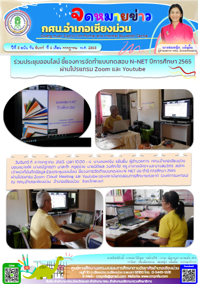 4 กรกฎาคม 2565 ร่วมประชุมออนไลน์ ชี้แจงการจัดทำแบบทดสอบ N-NET ปีการศึกษา 2565 ผ่านโปรแกรม Zoom และ Youtube