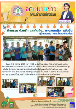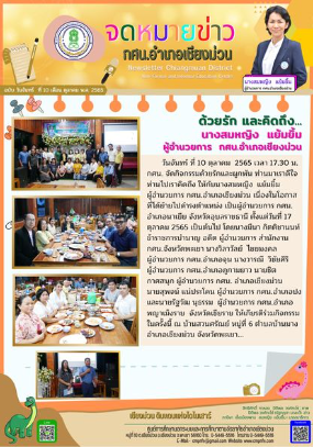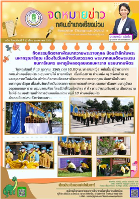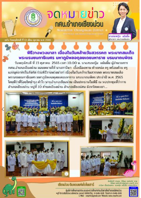 วันพฤหัสบดี ที่ 13 ตุลาคม 2565 เวลา 10.00 น. นางสมหญิง แย้มยิ้ม ผู้อำนวยการ กศน.อำเภอเชียงม่วน มอบหมายให้ นางภานิษา เชื้อเมืองพาน ตำแหน่ง ครู พร้อมด้วย ครู และบุคลากรในสังกัด ร่วมพิธีวางพวงมาลา เนื่องในวันคล้ายวันสวรรคต พระบาทสมเด็จพระบรมชนกาธิเบศร มหาภูมิพลอดุลยเดชมหาราช บรมนาถบพิตร ประจำปี พ.ศ. 2565 โดยมีว่าที่ร้อยโทบำรุง คำไว นายอำเภอเชียงม่วน เป็นประธานในพิธี ณ หอประชุมที่ว่าการอำเภอเชียงม่วน