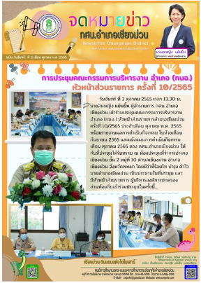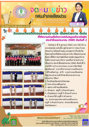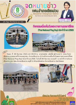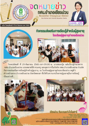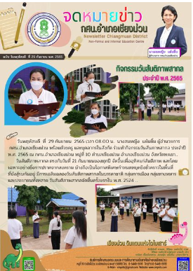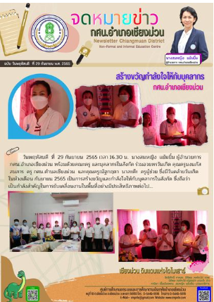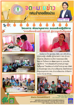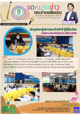 วันอังคาร ที่ 4 ตุลาคม 2565 เวลา 09.00 น. นางสมหญิง แย้มยิ้ม ผู้อำนวยการ กศน.อำเภอเชียงม่วน เป็นประธานเปิดการอบรมและเป็นวิทยากร ในโครงการ พัฒนาบุคลากร อบรมเชิงปฏิบัติการ "การเขียนเชิงสร้างสรรค์ สู่การพูดในที่ชุมชน" โดยจัดระหว่างวันที่ 4-6 ตุลาคม 2565 ณ ห้องประชุม กศน.อำเภอเชียงม่วน จังหวัดพะเยา มีครูและบุคลากร กศน.อำเภอเชียงม่วน เข้ารับการอบรม จำนวน 13 คน...