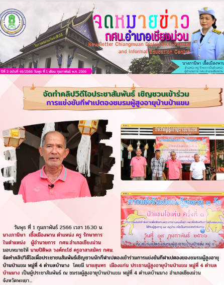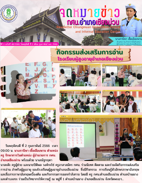 2 กุมภาพันธ์ 2566 ร่วมนิเทศ ติดตาม และร่วมจัดกิจกรรมส่งเสริมการอ่าน สำหรับผู้สูงอายุ ของโรงเรียนผู้สูงอายุอำเภอเชียงม่วน…
