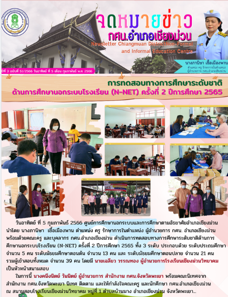 5 กุมภาพันธ์ 2566 การทดสอบทางการศึกษาระดับชาติด้านการศึกษานอกระบบโรงเรียน (N-NET) ครั้งที่ 2 ปีการศึกษา 2565…