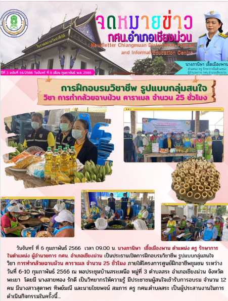 6 กุมพันธ์ 2566 การฝึกอบรมวิชาชีพ รูปแบบกลุ่มสนใจ วิชา การทำกล้วยฉาบม้วน คาราเมล จำนวน 25 ชั่วโมง…