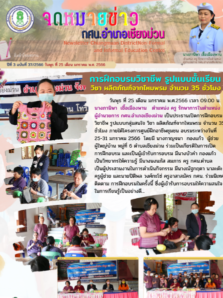 25 มกราคม 2566 การฝึกอบรม วิชาชีพ รูปแบบกลุ่มสนใจ วิชา ผลิตภัณฑ์จากไหมพรม จำนวน 35 ชั่วโมง…