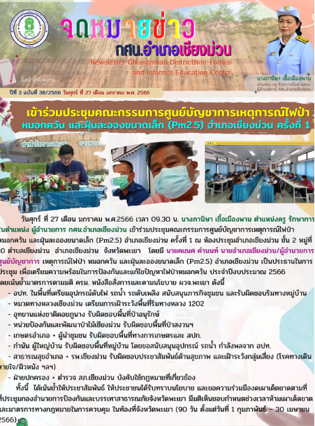 27 มกราคม 2566 เข้าร่วมประชุมคณะกรรมการศูนย์บัญชาการเหตุการณ์ไฟป่าหมอกควัน และฝุ่นละอองขนาดเล็ก (Pm2.5) อำเภอเชียงม่วน ครั้งที่ 1