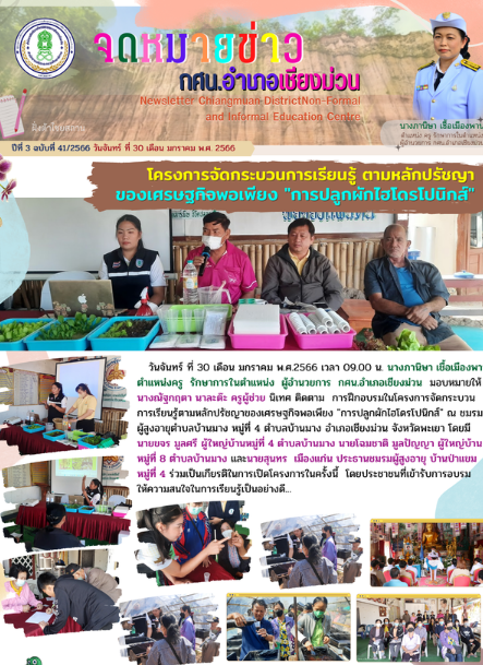 30 มกราคม 2566 โครงการจัดกระบวนการเรียนรู้ตามหลักปรัชญาของเศรษฐกิจพอเพียง “การปลูกผักไฮโดรโปนิกส์”…