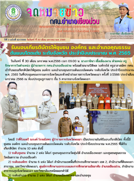 30 มกราคม 2566 เข้ารับมอบเกียรติบัตรให้ชุมชน องค์กร และอำเภอคุณธรรมต้นแบบโดดเด่น ระดับจังหวัด ประจำปีงบประมาณ พ.ศ. 2565…