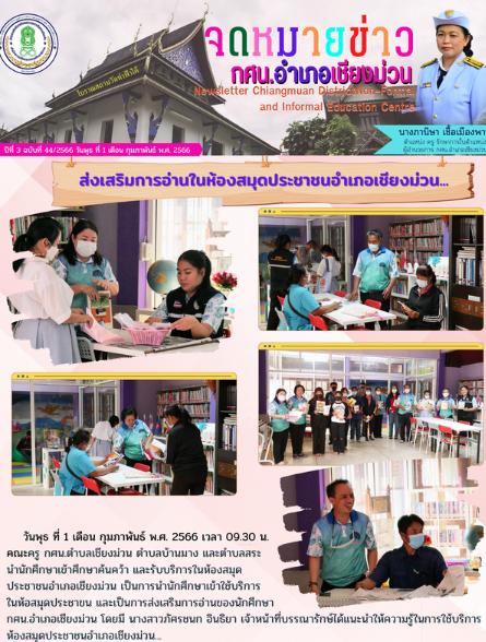 1 กุมภาพันธ์ 2566 นำนักศึกษาเข้าศึกษาค้นคว้า และรับบริการในห้องสมุดประชาชนอำเภอเชียงม่วน…