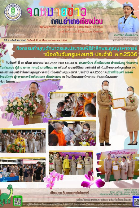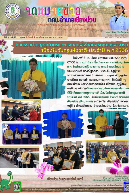 16 มกราคม เข้าร่วมกิจกรรมทำบุญตักบาตรและประกอบพิธีรำลึกพระคุณบูรพาจารย์ เนื่องในวันครูแห่งชาติ ประจำปี พ.ศ.2566