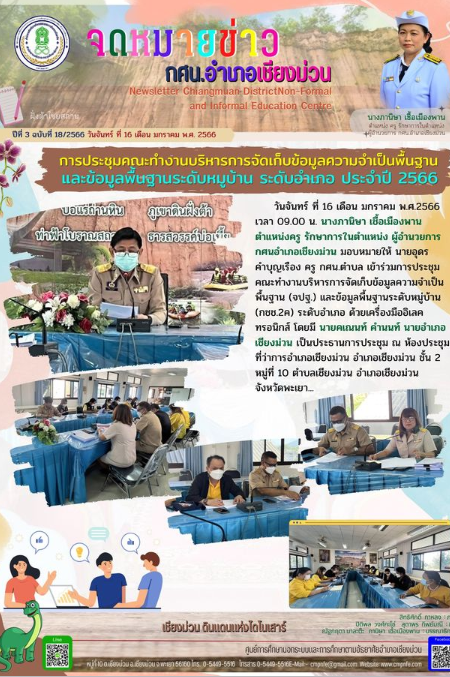 16 มกราคม 2566 เข้าร่วมการประชุมคณะทำงานบริหารการจัดเก็บข้อมูลความจำเป็นพื้นฐาน (จปฐ.) และข้อมูลพื้นฐานระดับหมู่บ้าน (กชช.2ค) ระดับอำเภอ
