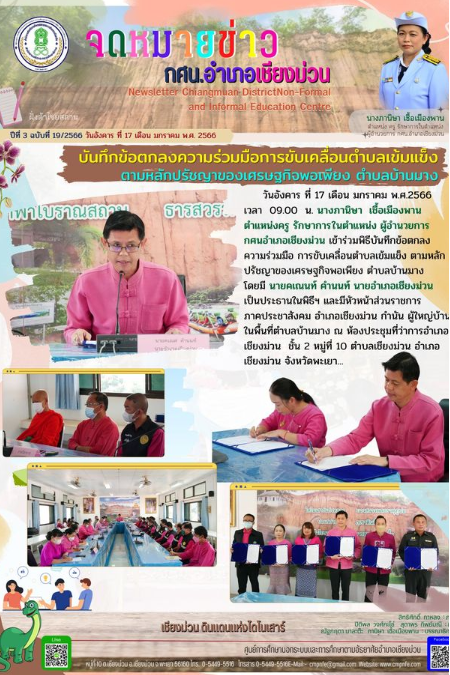 17 มกราคม 2566 เข้าร่วมพิธีบันทึกข้อตกลงความร่วมมือ การขับเคลื่อนตำบลเข้มแข็ง ตามหลักปรัชญาของเศรษฐกิจพอเพียง ตำบลบ้านมาง