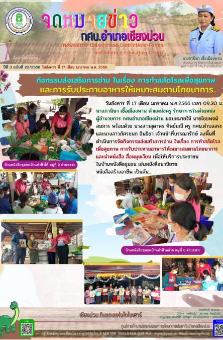 17 มกราคม 2566 กิจกรรมส่งเสริมการอ่าน ในเรื่อง การทำสลัดโรลเพื่อสุขภาพ การรับประทานอาหารให้เหมาะสมตามโภชนาการ และนำหนังสือ สื่อหมุนเวียน