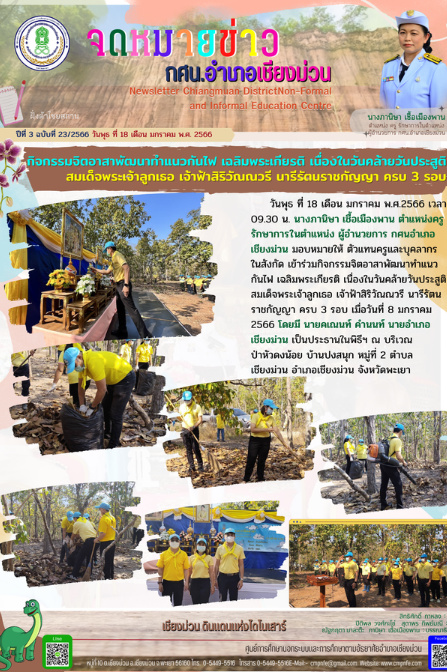 18 มกราคม 2566 เข้าร่วมกิจกรรมจิตอาสาพัฒนาทำแนวกันไฟ เฉลิมพระเกียรติ เนื่องในวันคล้ายวันประสูติ สมเด็จพระเจ้าลูกเธอ เจ้าฟ้าสิริวัณณวรี นารีรัตนราชกัญญา ครบ 3 รอบ เมื่อวันที่ 8 มกราคม 256618 มกราคม 2566