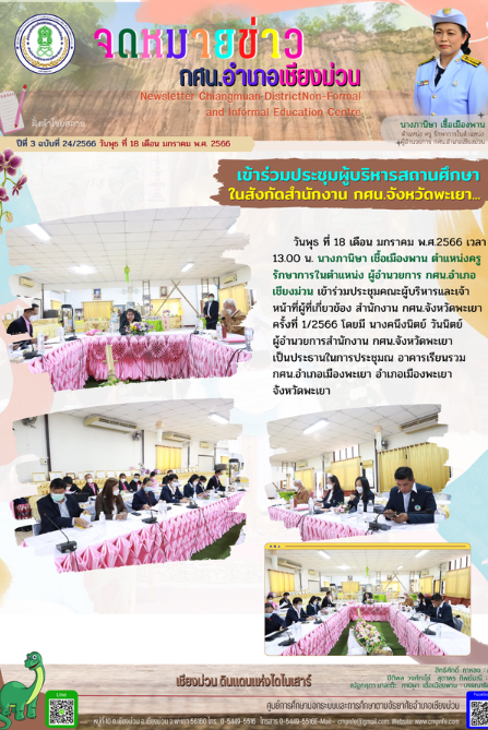 18 มกราคม 2566 เข้าร่วมประชุมคณะผู้บริหารและเจ้าหน้าที่ผู้ที่เกี่ยวข้อง สำนักงาน กศน.จังหวัดพะเยา ครั้งที่ 1/2566…